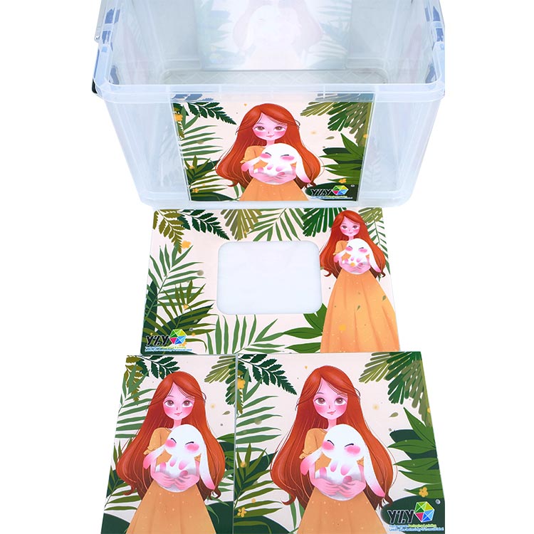 YZY adota o processo de etiquetagem no molde, que derrete os padrões de etiqueta personalizados pelo cliente na superfície da Tote Box, obtendo um design integrado e perfeito sem a necessidade de adesão manual adicional. Além disso, o cliente pode optar por deixar a etiqueta semitransparente, garantindo que o produto final alie praticidade e estética. A caixa transparente torna conveniente para o consumidor identificar rapidamente o conteúdo de seu interior.